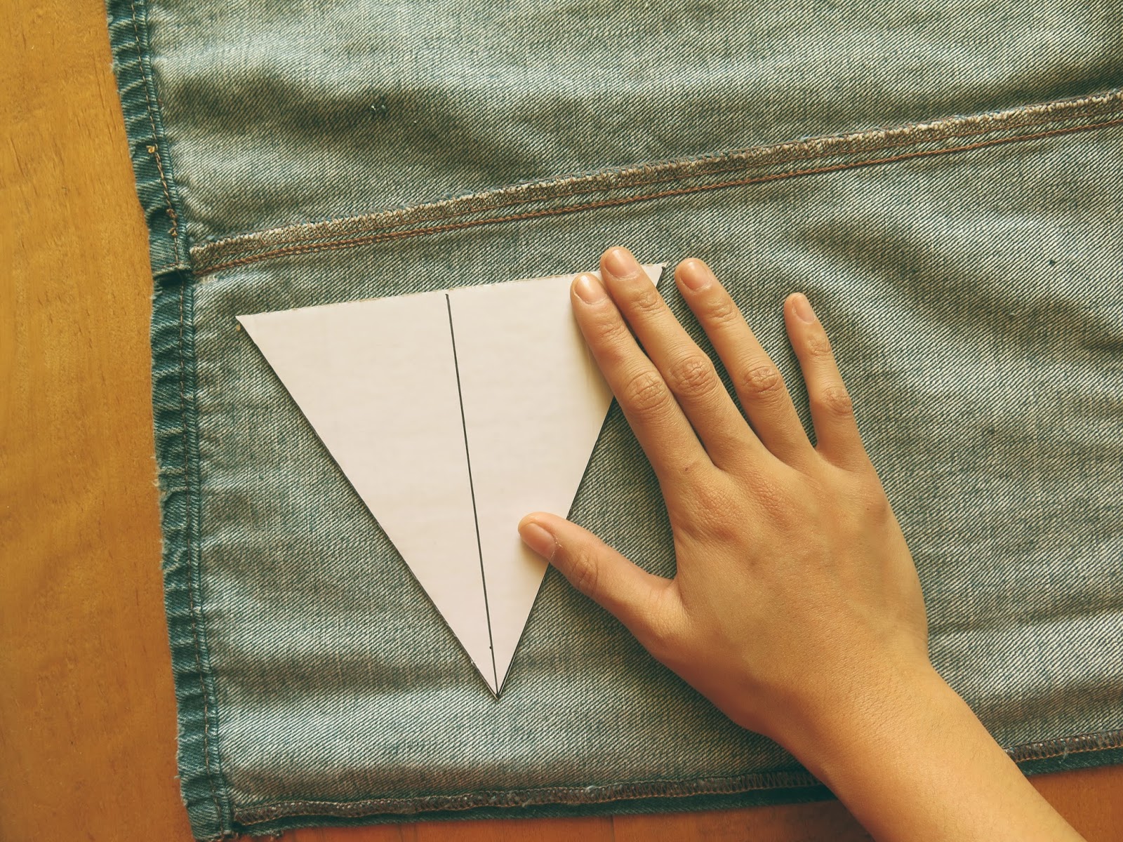 Place the pennant template on the flat surface of the inside of the jeans and start to trace the template onto the jeans with a black marker.Step 4: Cut Out Pennant Flags